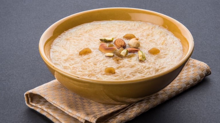 In India, where food and culture intertwine like the strands of noodles in a bowl, Kheer stands as a treat fit for royalty. This creamy dessert is a captivating blend of rice noodles, milk, sugar, and an enchanting combination of cardamom and saffron. Adorned with a sprinkle of chopped nuts and juicy raisins, Kheer is more than just a dish; it's a joyous celebration captured in every spoonful. To create this masterpiece, gently simmer rice noodles in milk until they become tender and the milk thickens. Then sweeten it with sugar. Enrich its flavors with cardamom and saffron.