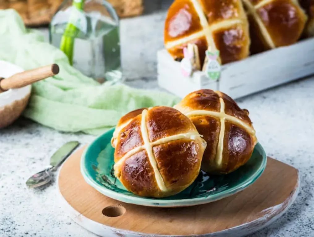 A symbol of Good Friday, hot cross buns represent the crucifixion with their cross design. The eggless version uses yeast, flour, warm milk and butter, with mashed bananas or curd providing softness. Knead the dough, let it rise and bake until golden. Brush with a simple sugar glaze and enjoy these warm, mildly spiced buns with your evening tea.