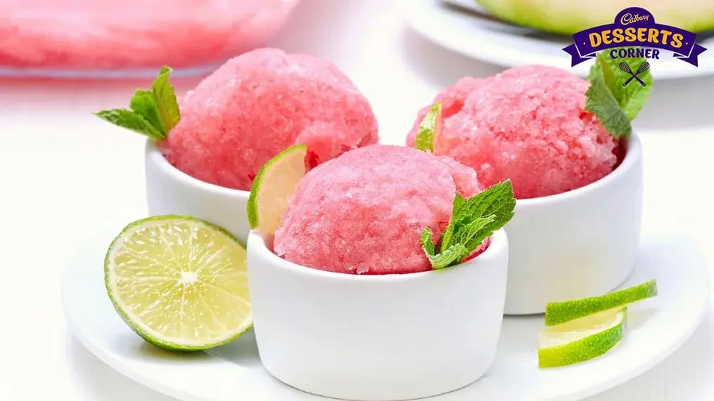 - This zesty sorbet pairs with sparkling water for a contrast.