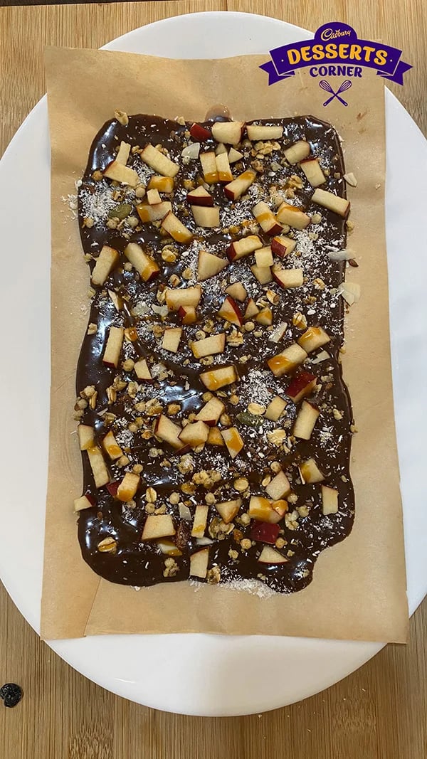 This sweet apple chocolate bark is an amazing quick in-between a dessert and a snack. Enjoy it on the go or at a leisurely pace.