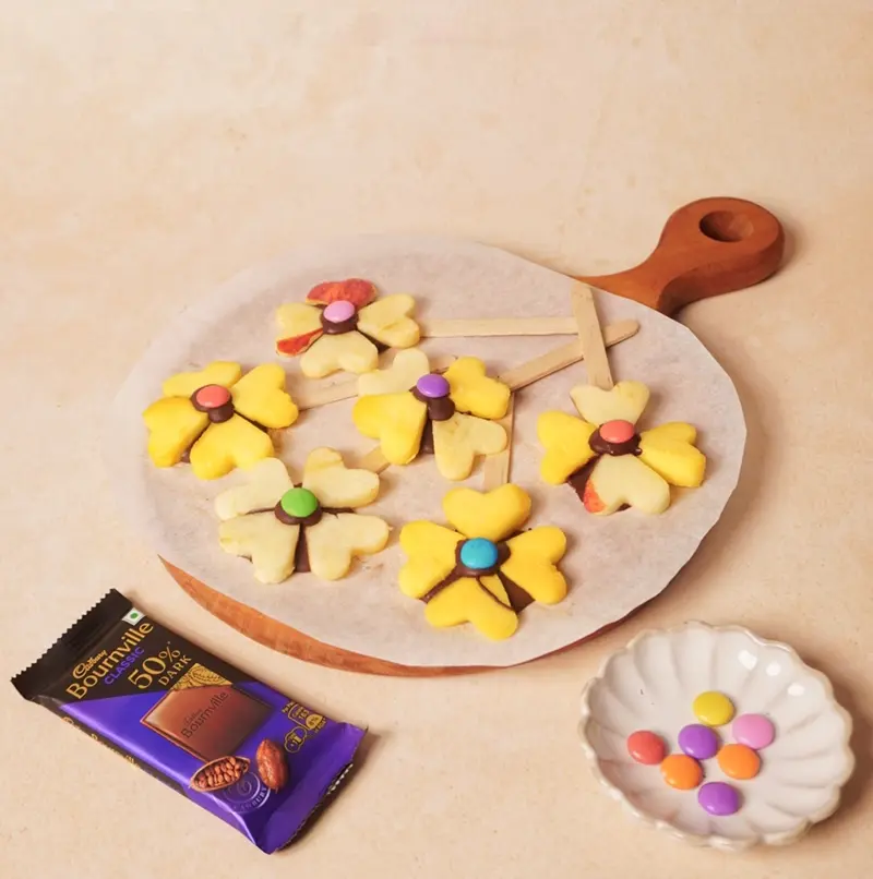 Turn apples into flowers with the help of melted Cadbury Bournville dark chocolate and Cadbury Gems to create a whimsical treat without extra effort. Follow the recipe and make your own fruit flowers for when you crave for something sweet, light, and healthy.