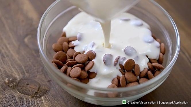 Pour warm cream over the Cadbury Choco Melts. Whisk well.