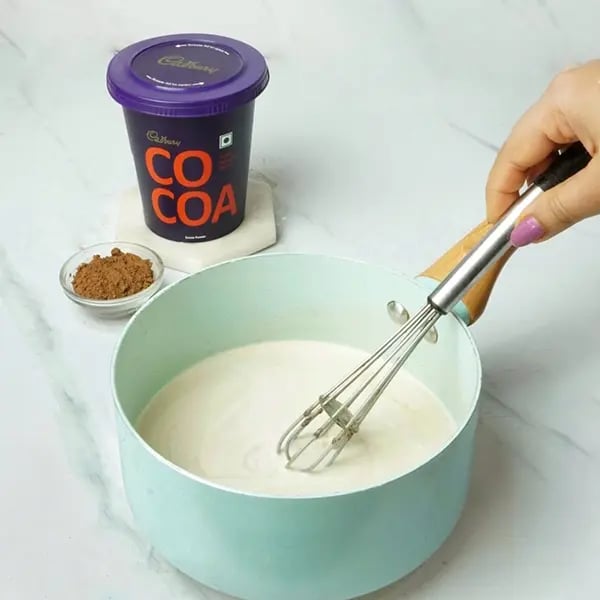 Take ¼ cup of milk in a cup and add Cadbury cocoa powder.