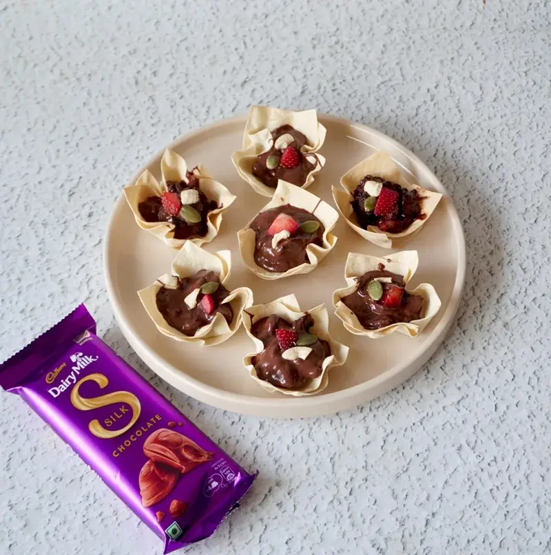 Chocolate cups are a delight for tastebuds. With the crispy shell of samosa sheet, you get the gooey center of chocolate infused with crunchy dry fruits and satisfying fresh fruits, this treat will become the highlight of party.