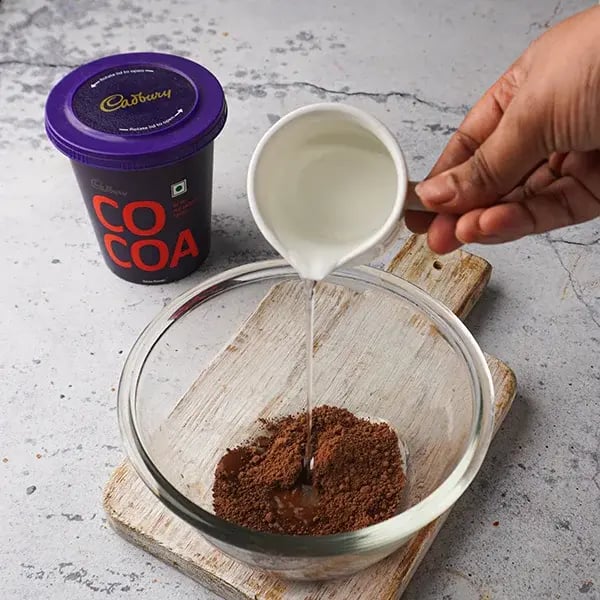 To help dissolve the cocoa powder and achieve a smooth consistency, pour boiling water into the dish.