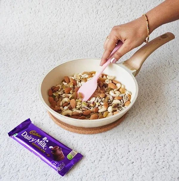 Chocolate meets the comfort of jaggery chikki to make your power snacking delightful. Check out the detailed recipe below and learn how to make dry fruit chocolate chikki at home.