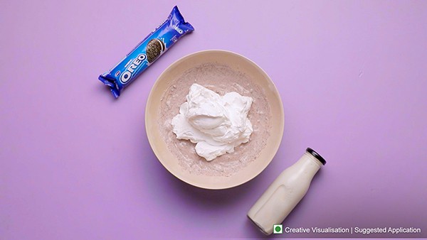 In another bowl, add hung curd, powdered Oreo Cookies and sugar. Whisk well.